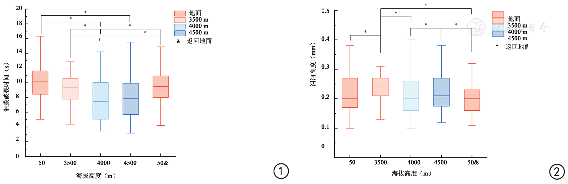 图2 健康受试者不同海拔高度下泪河高度的变化