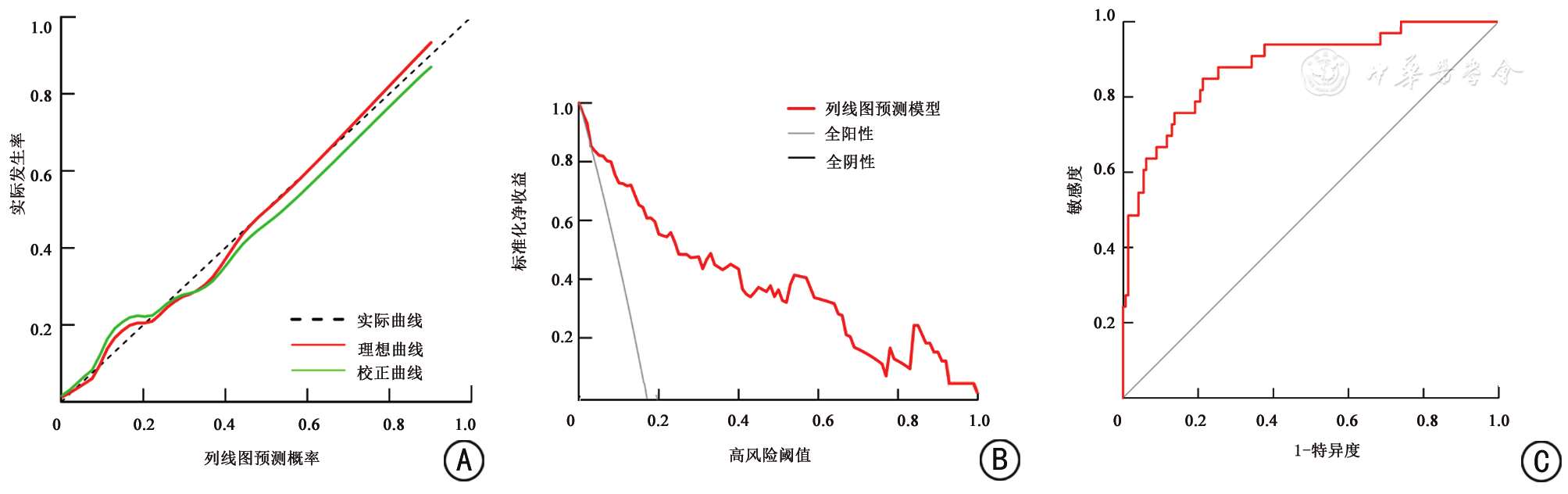 In the poor prognosis group with 33 cases (33 eyes), the diabetes duration median and urinary albumin were 11.00 (9.00, 13.50) years and 42.37 (36.41, 48.46) mg/L, respectively; there were 13 with hyperlipidemia, 14 with coronary heart disease, 6 with hypertension, accounting for 39.39%, 42.42% and 18.18%, respectively; 6 cases (6 eyes) with PDR stage Ⅳ, 15 cases (15 eyes) with stage Ⅴ, 12 cases (12 eyes) with stage Ⅵ, accounting for 18.18%, 45.45% and 36.36%, respectively; 6 with oral medications of diabetes treatment type, 17 with insulin injections, 10 with insulin combined with oral medications, accounting for 18.18%, 51.52% and 30.30%, respectively; 14 with macular detachment, 4 with iris rubeosis, 31 with vitreous hemorrhage, 13 with preretinal hemorrhage, accounting for 42.42%, 12.12%, 93.94% and 39.39% respectively; 11 not used anti-VEGF treatment, 18 used preoperativly, 4 used intraoperativly, accounting for 33.33%, 54.55% and 12.12% respectively; 17 combined with cataract surgery, accounting for 51.52%; 2 with C3F8 for vitreous cavity tamponade, 27 with silicone oil, 4 with balanced saline solution, accounting for 6.06%, 81.82% and 12.12% respectively; 18 with postoperative complications accounting for 54.55%. In the good prognosis groups with 146 cases (146 eyes), the diabetes duration median were 9.00 (7.00, 11.00) years; urinary albumin 41.76 (37.10, 46.09) mg/L; 37 with hyperlipidemia, 42 with coronary heart disease, 27 with hypertension, accounting for 25.34%, 28.77% and 18.49% respectively; PDR stage: 44 cases (44 eyes) with Ⅳ stage, 85 cases (85 eyes) with Ⅴ stage, 17 cases (17 eyes) with Ⅵ stage, accounting for 30.14%, 58.22% and 11.64% respectively; diabetes treatment type: 37 used by oral medications, 70 used by insulin injections, 39 used by insulin combined with oral medications, accounting for 25.34%, 47.95% and 26.71% respectively; 16 with macular detachment, 3 with iris rubeosis, 127 with vitreous hemorrhage, 52 with preretinal hemorrhage, accounting for 10.96%, 2.05%, 86.99% and 35.62% respectively; 35 not used anti-VEGF treatment, 94 preoperative, 17 intraoperative, accounting for 23.97%, 64.38% and 11.65% respectively; 58 with combined cataract surgery, accounting for 39.73%; 38 with C3F8 after vitreous cavity tamponade, 90 with silicone oil, 18 with balanced saline solution, accounting for 90.41%, 61.64% and 12.33% respectively; 32 with postoperative complications, accounting for 21.92%. The mean preoperative BCVA, number of retinal laser spots, preoperative IOP, systolic blood pressure, diastolic blood pressure, fasting blood glucose, HbA1c, total cholesterol, triglycerides, high density lipoprotein, low density lipoprotein, neutrophil count, lymphocyte count, platelet count, white blood cell count, alanine aminotransferase, aspartate transaminase, glutamyl transpeptidase, serum creatinine were (1.97±0.60) logarithm of the minimum angle of resolution (logMAR), (652.06±381.20)spots, (19.12±4.30)mmHg (1 mmHg=0.133 kPa), (153.97±20.86)mmHg, (93.85±10.03)mmHg, (10.22±1.41)mmol/L, (7.71±1.72)%, (5.33±0.33)mmol/L, (1.84±0.39)mmol/L, (1.05±0.07)mmol/L, (3.20±0.54)mmol/L, (3.90±1.14) ×109/L, (1.60±0.45) ×109/L, (254.93±54.14) ×109/L, (8.47±2.62) ×109/L, (26.92±8.18)U/L, (24.34±8.70)U/L, (36.60±11.12)U/L, (123.39±16.96)μmol/L, respectively; while those of good prognosis group were (1.62±0.47) logMAR, (1055.26±433.68) spots, (17.40±5.08) mmHg, (149.12±20.14) mmHg, (89.84±11.11) mmHg, (9.71±1.35) mmol/L, (6.99±1.40)%, (5.20±0.51) mmol/L, (1.78±0.34) mmol/L, (1.06±0.13) mmol/L, (3.00±0.55) mmol/L, (3.72±1.26) ×109/L, (1.76±0.59) ×109/L, (254.40±69.00) ×109/L, (8.33±2.49) ×109/L, (24.80±8.82) U/L, (22.52±7.54) U/L, (33.36±10.23) U/L, (119.65±18.23) μmol/L, respectively. There was a statistically significant difference in diabetes duration(Z=-3.316, P<0.05); macular detachment, iris rubeosis, vitreous cavity tamponade, and postoperative complications (χ2=19.102, 4.827, 6.479, 14.234; P<0.05); preoperative BCVA, number of retinal laser spots, and HbA1c (t=3.667, 4.926, 2.573; P<0.05). Lasso regression identified five variables with non-zero features: PDR stage, preoperative BCVA, macular detachment, number of retinal lasers, and postoperative complications. Multivariate logistic regression analysis showed that PDR Ⅴ, Ⅵ stages, preoperative BCVA, macular detachment, and postoperative complications were independent risk factors for short-term poor prognosis in PDR patients after PPV (OR=3.630, 10.296, 3.082, 3.806, 2.920; 95%CI: 1.088 to 12.110, 2.630 to 40.303, 1.074 to 8.845, 1.260 to 11.499, 1.075 to 7.930; P<0.05), while the number of retinal lasers was an independent protective factor (OR=0.784, 95%CI: 0.685~0.897; P<0.05). A column chart prediction model was constructed based on independent influencing factors of short-term poor prognosis in PDR patients undergoing PPV Logit (P)=-3.233+ 1.289×PDR stage Ⅴ+ 2.332×PDR stage Ⅵ+ 1.125×preoperative BCVA+ 1.337×macular detachment -0.002×number of retinal lasers+ 1.071×postoperative complications. The prediction model was well, and C index of 0.885 (95%CI: 0.876 to 0.895, P>0.05). The predicted probability of the column chart prediction model after the calibration curve and decision curve was close to the ideal curve, and the net profit range was relatively large. ROC curve analysis showed that the area under the curve of the line chart prediction model for predicting short-term poor prognosis in PDR patients after PPV was 0.885 (95%CI: 0.828 to 0.927), with a sensitivity of 84.85%, specificity of 78.77%, and a Youden index of 0.6362.